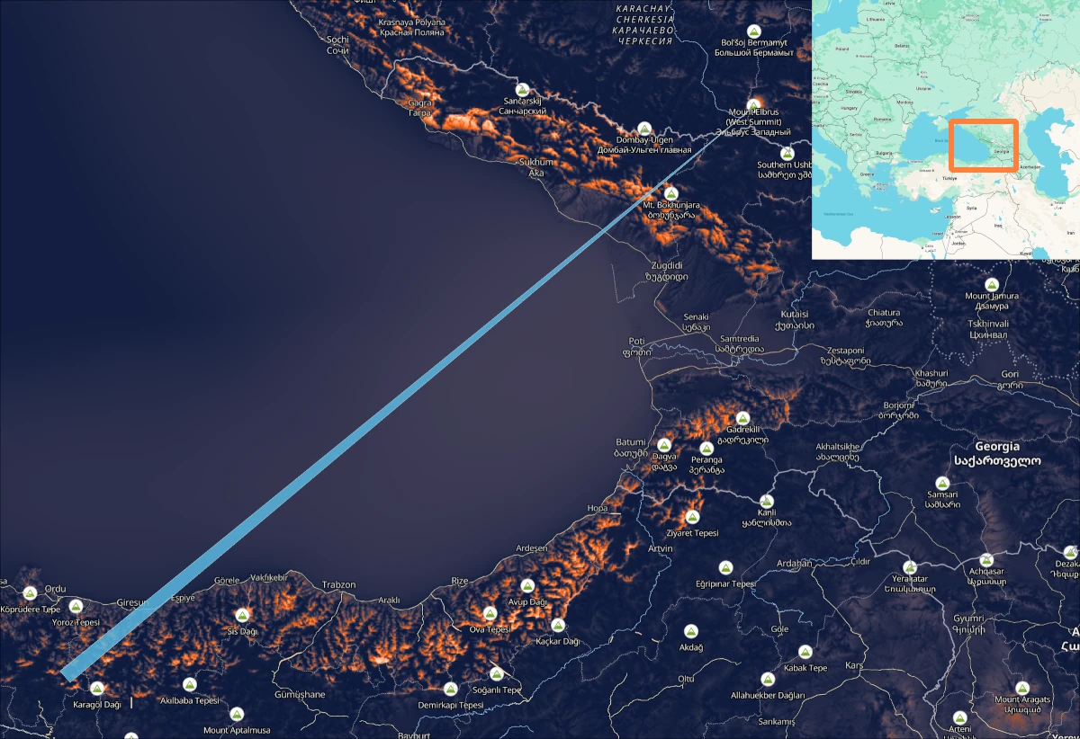 3. Mount Elbrus to the Pontic Mountains (483km) ↗